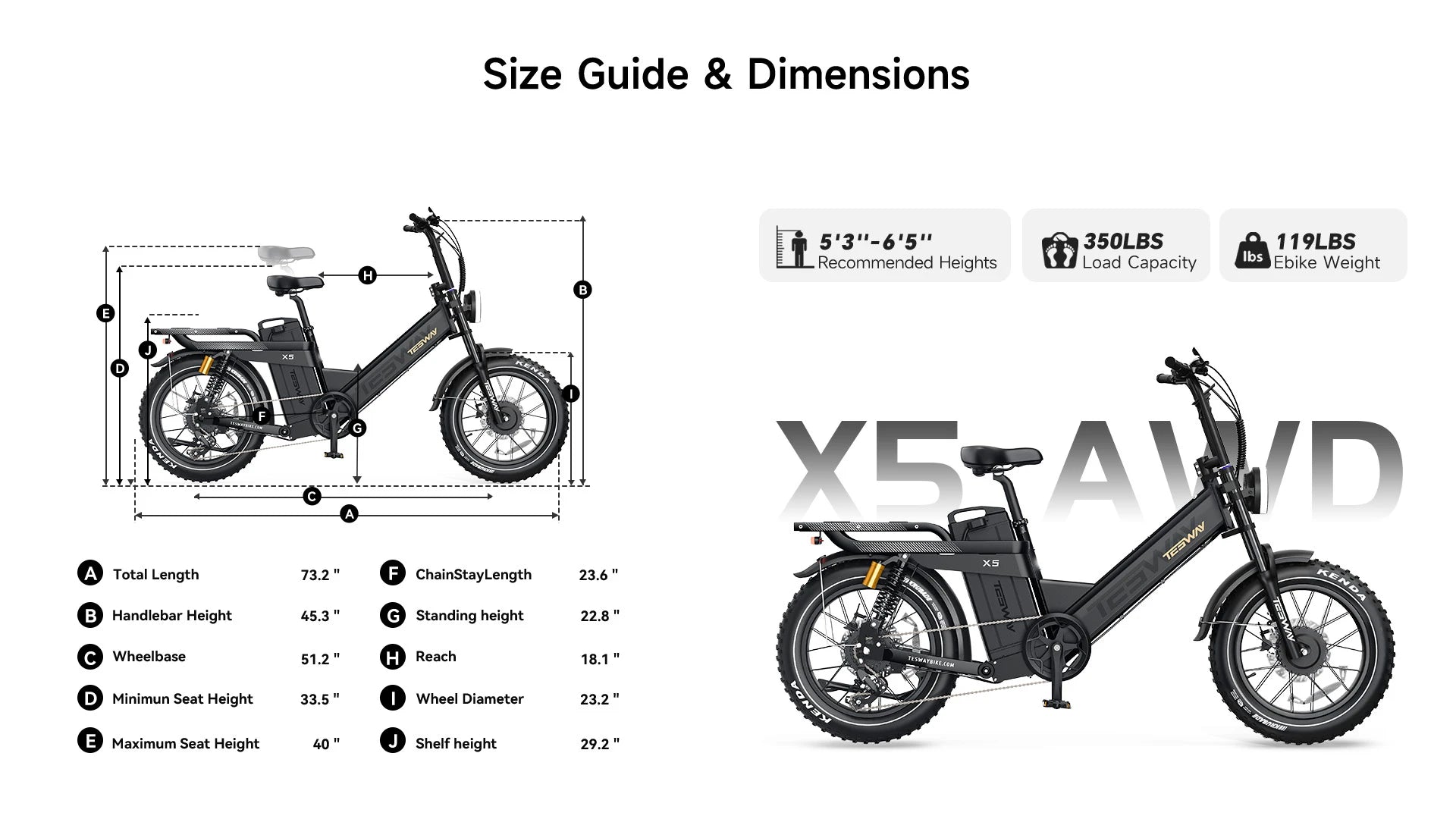 The main difference between X5 AWD and X7 AWD is the exterior design of the frame. X5 AWD is a step-thru design, while X7 AWD is a step-over design. Other functions are the same.