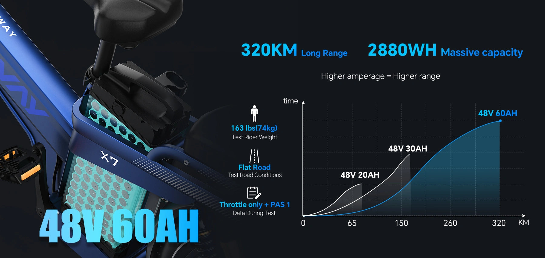 48V 60Ah battery delivers a 200 miles range – Massive capacity for ultra-long shifts, fewer charges, and more deliveries. Ride farther, work smarter, and boost your efficiency with unmatched endurance!