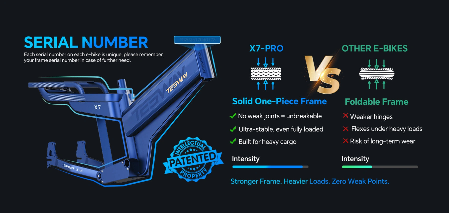 The new non-foldable patented frame delivers ultimate durability with a bold, rugged design for heavy-duty cargo & outdoor adventures. Reinforced structure enhances strength while added water bottle mounts boost functionality. Built tougher. Rides harder.