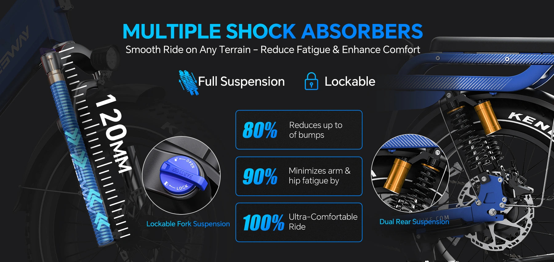 Engineered for endurance, this extra-wide comfort saddle keeps you and your passenger pain-free mile after mile, perfectly matching your ebike's extended range for shared adventures.