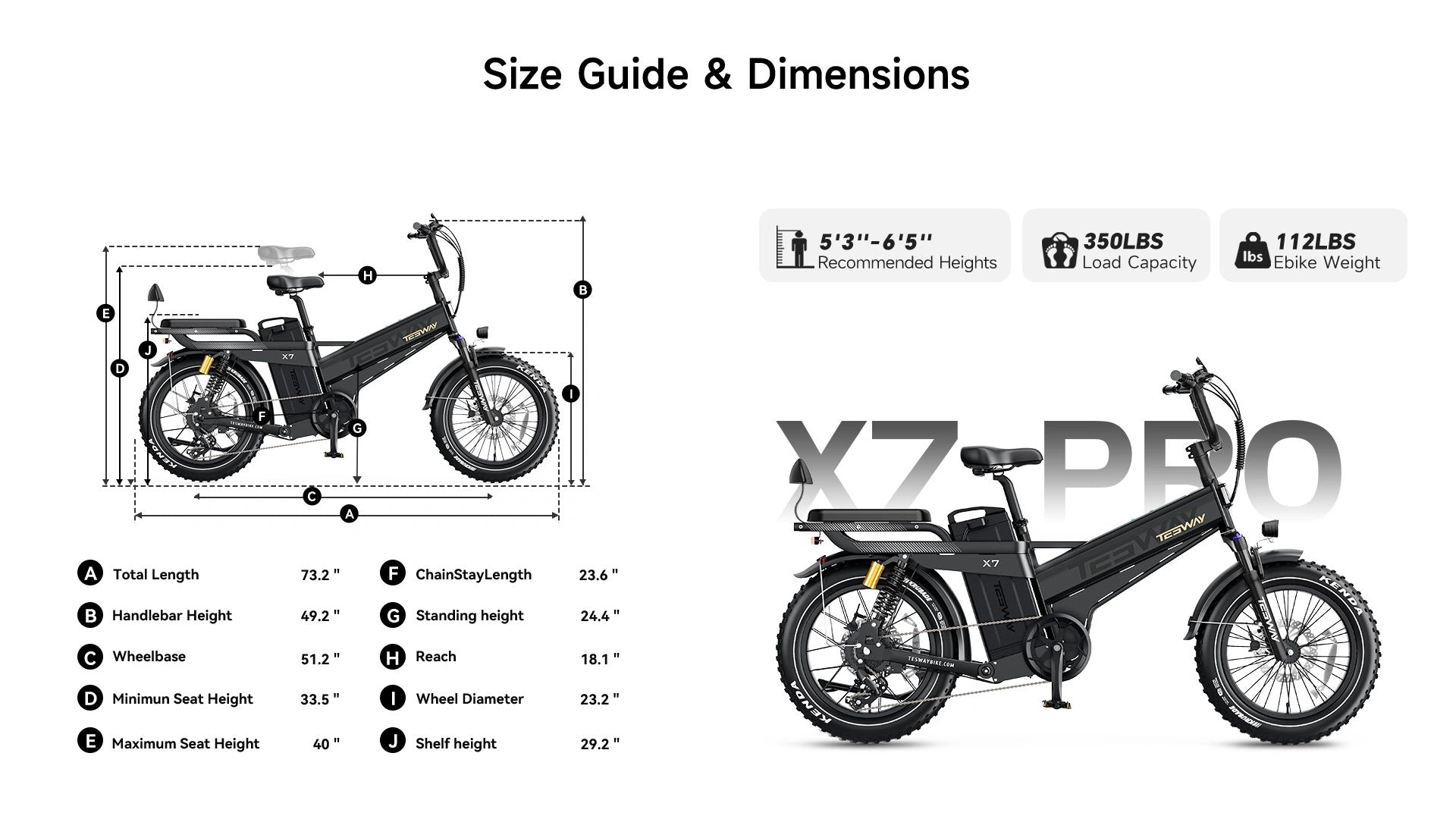 Engineered for heavy loads - ultra-strong frame, front & rear cargo racks, and rugged construction let you transport more, ride farther with confidence.