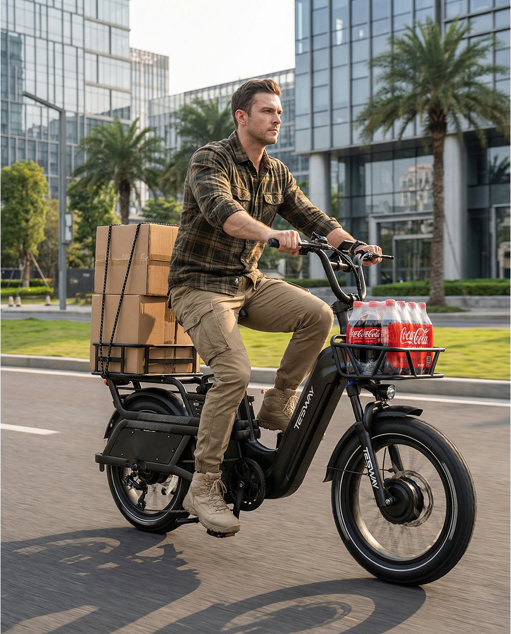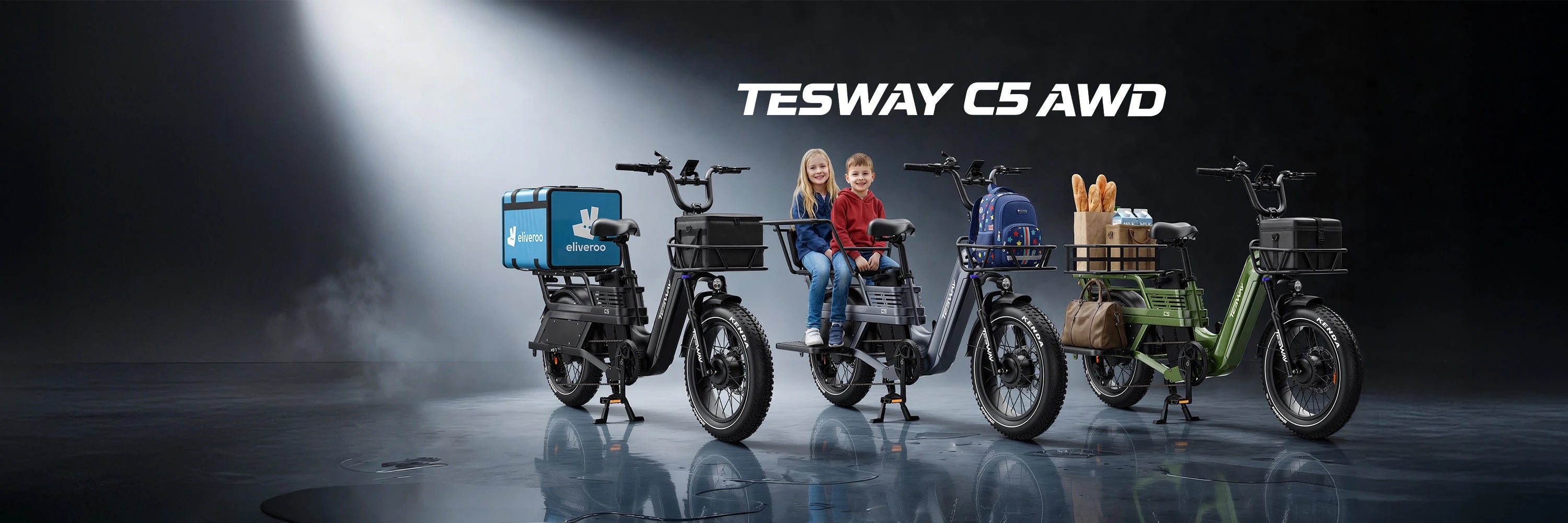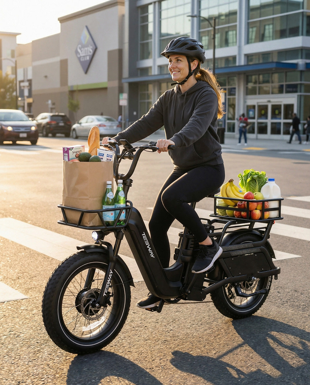 The TESWAY C5 AWD Cargo E-Bike transforms everyday grocery runs into a faster, easier, and more efficient ride. Its dual-motor drive system delivers stable power under load, while the 52V 60Ah battery supports long-distance riding without range anxiety—up to 200 miles on a single charge. From fresh produce to full baskets, it’s a practical solution for urban life that replaces short car trips with confidence and control.