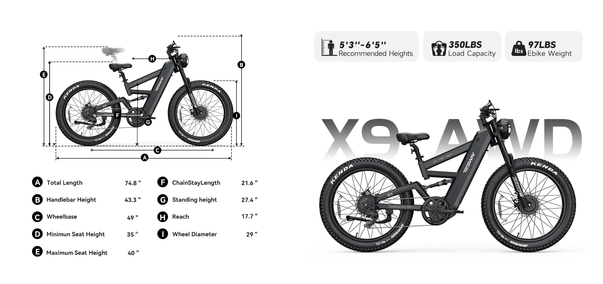 TESWAY X9 AWD - 4000W Dual Motors Electric Mountain Bike